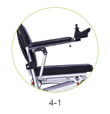 Take out the controller from the accessory box, make sure the main power on the battery box is turned on while the power switch on the controller is not turned on, then press and hold the folding key ① (see Picture3-1) for 3 seconds, release the button when the LED lights are on and there is a beep sound. Press and hold the unfold key ② for 3 seconds to unfold the wheelchair.Press key ③ to stop folding or unfolding.