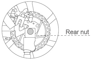 Rotate to loosen the nuts. Adjust the nut forwards or backwards to find the suitable looseness. When adjusting the chain, it must also be aligned with the rear nut and adjusting nut and keep the front and rear wheels in a straight line. After adjustment, refasten the nut in the rear wheel, lock the adjusting nut to have a final check. The chain sag between the two chain wheels should be 10~15. Clip mouth is back to the installation.