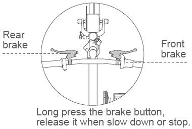 3. When riders need to slow down or stop R3, riders put their fingers on the brake handle, and press the brake handle hard until the scooter slows down or stops.